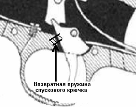 Эта иллюстрация показывает, как спусковой крючок должен сцепляться с шепталом в нижней части курка; этот рисунок являетсятолько иллюстра-цией и не предназначен для изображения деталей, которые Вы делаете.